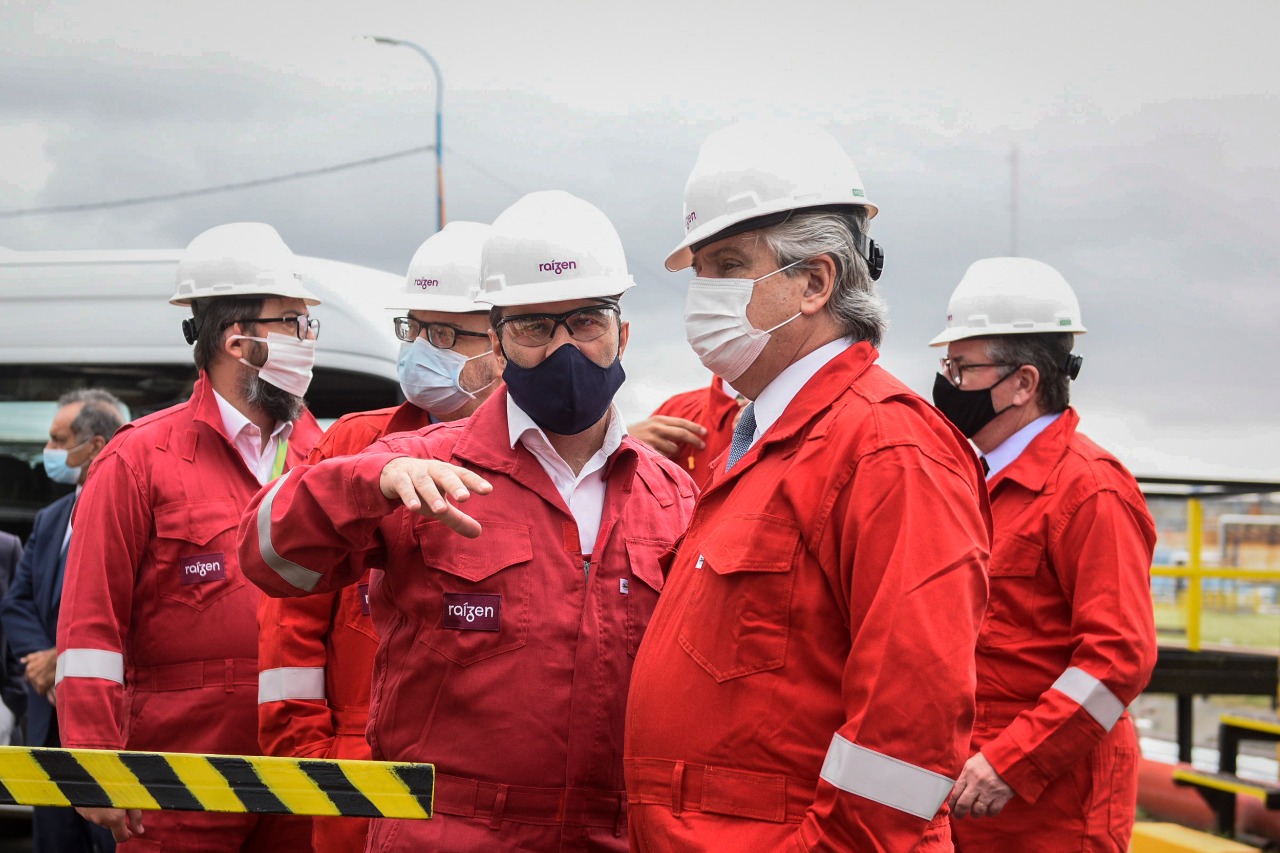 El presidente Alberto Fernández recorrió la refinería de la empresa Raízen, en la localidad bonaerense de Dock Sud, donde participó de la inauguración de una planta de propelentes que demandó una inversión de 8 millones de dólares y mantuvo una reunión de trabajo con las autoridades de la firma quienes le detallaron el avance del plan para la Argentina.