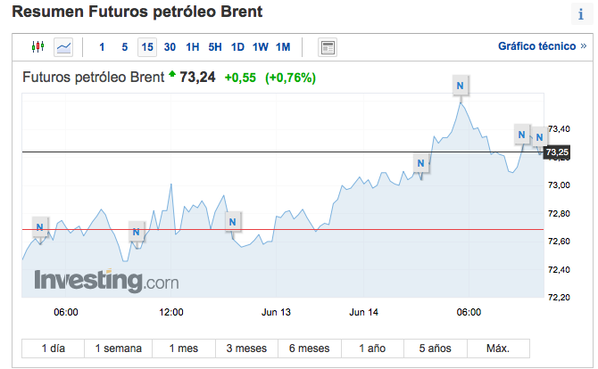 Los precios del petróleo subían hoy y tocaban su mayor nivel en más de dos años. El Brent supera los 73 dólares el barril.