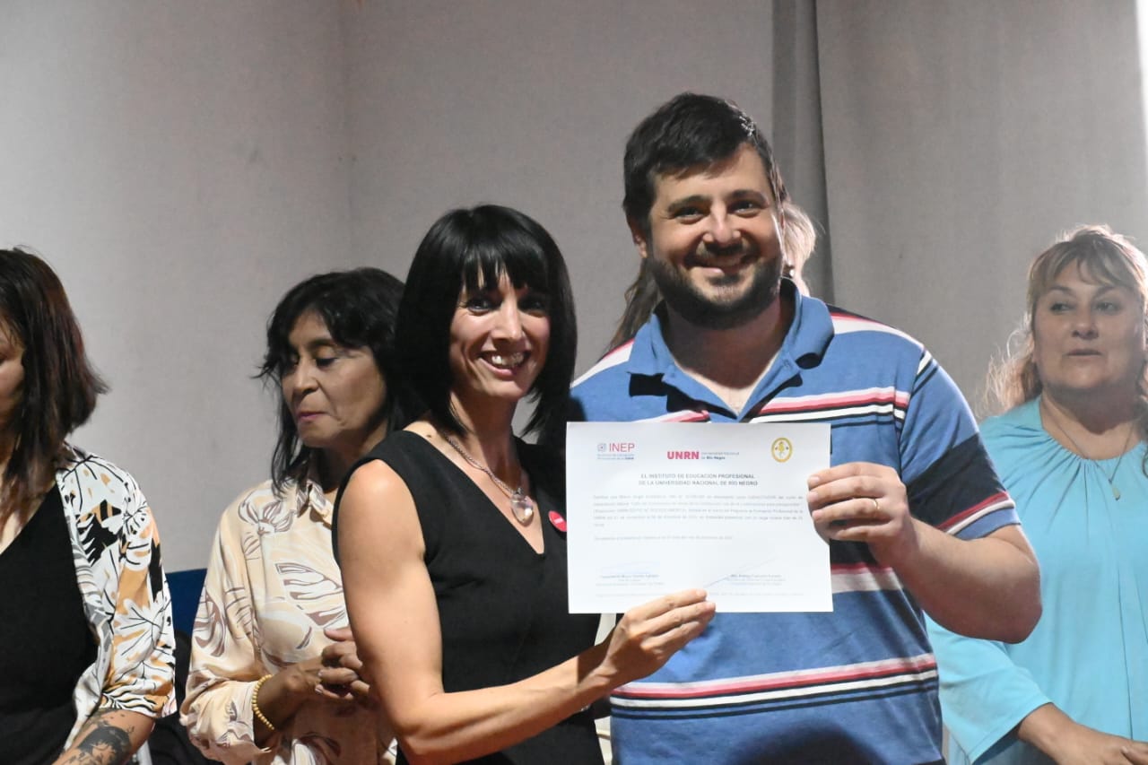El acto de entrega de diplomas contó con la presencia Jefe de Cuerpo Activo de la Asociación de Bomberos, Damián Lavigne; la subsecretaria de Asuntos Académicos de UNRN, Carolina Land, la concejal Roxana Tomassini, la delegada municipal en San Antonio Este Daiana Lizama, el subsecretario de comercio y transporte del municipio Sebastián Senger; y representantes de Southern Energy y Secretaría de Energía de Río Negro.